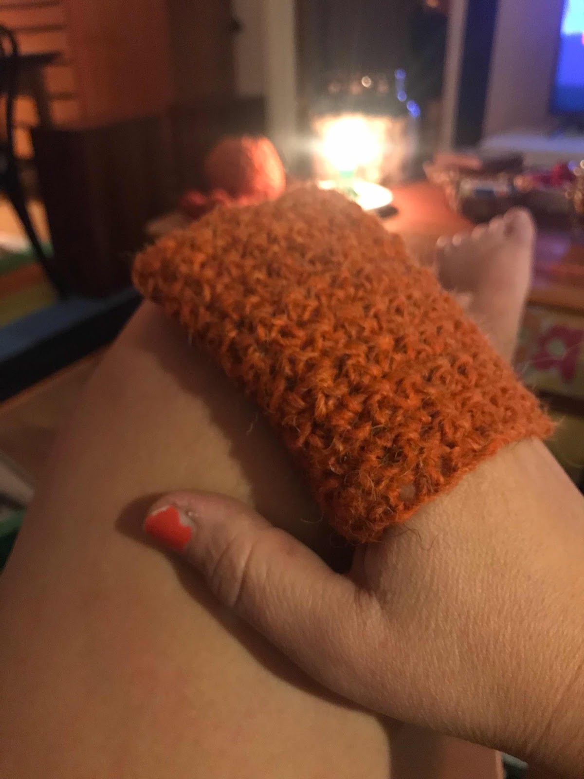 Pyssel med virk-kroken idag... virkade två tvagnings vantar att skrubba kroppen med i bastun och i duschen.
