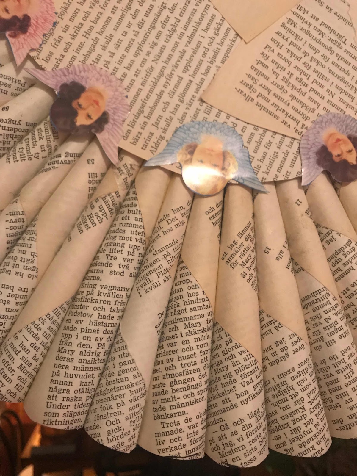Tillverkade en julkrans av papper ur en bok.