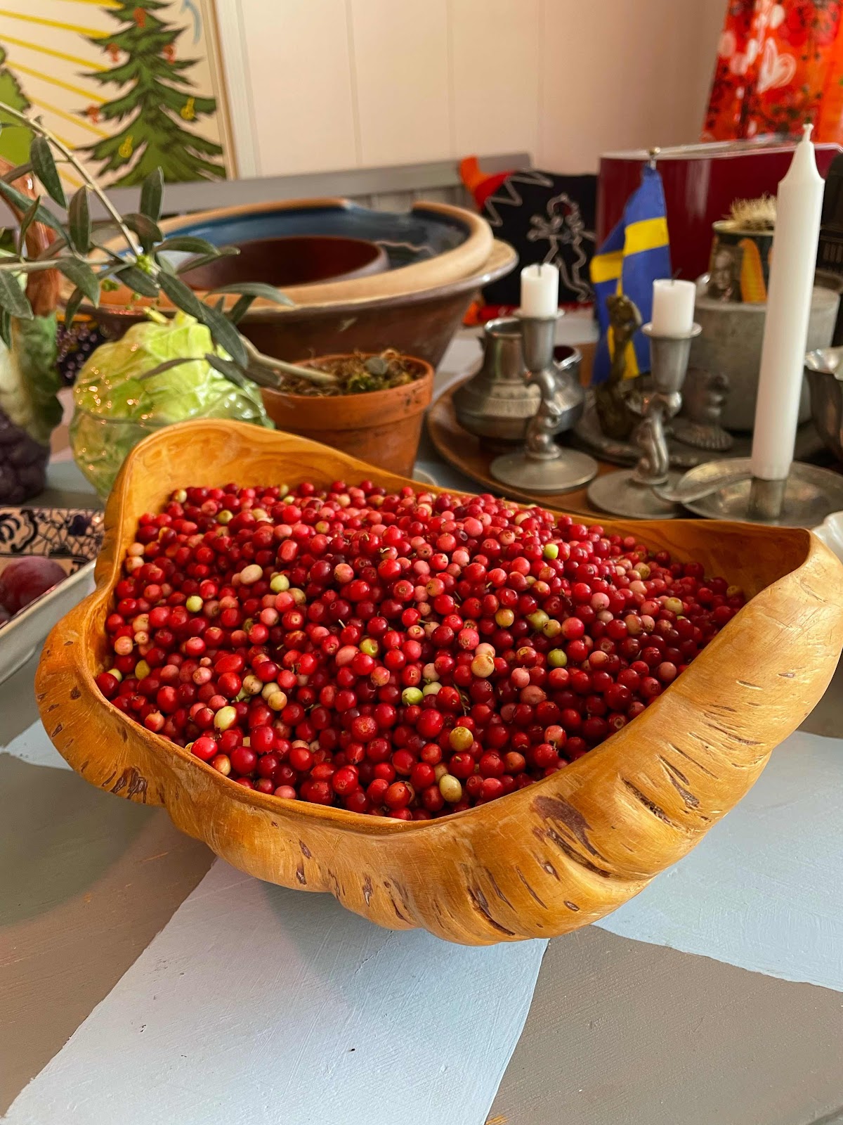 Två liter lingon som får ligga och mogna några dagar.